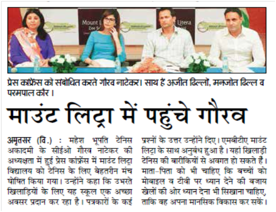 The Mount Litera Grand Tennis Open was powered by MBTA. We conducted an inter school tennis championship in Amritsar for students in the under 12 and under 14 categories. It was an exciting one week with students participating even from Ludhiana and Jalandhar. The winners and the runners up of the tournament had the opportunity to attend a 3 day high intensity camp by MBTA at the Mount Litera Zee School. The winners were also given tickets to the International Premier Tennis League to watch the top stars and the legends of tennis battle it out on court.